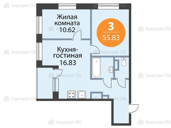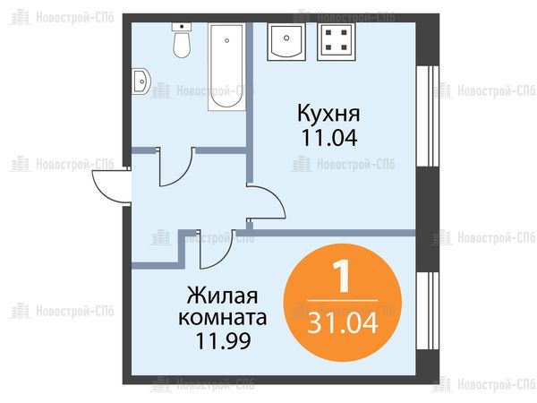 В большинстве однокомнатных квартир совмещенный санузел, его площадь составляет примерно 3,4–5 кв. метров. Но есть несколько вариантов таких квартир с раздельными санузлами.