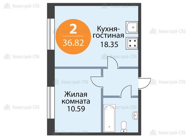 | 1-комн. | от 36,8 | 117 | 4 300 000 |