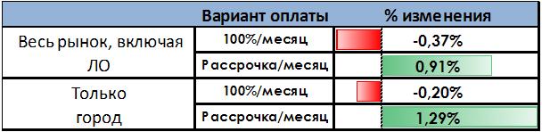 Средние цены как при 100% оплате, так и при оплате в рассрочку меняются практически в одном направлении.