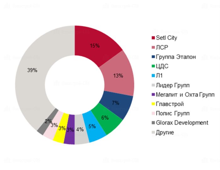 Доля девелоперов в объеме предложения жилья в Санкт-Петербурге, м²