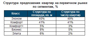 В 1 квартале 2013 года в сегменте «эконом» средневзвешенная цена предложения снизилась на 2% по сравнению с 4 кварталом 2012 года, главным образом за счет выхода в продажу большого объема новых проектов на пограничных территориях Ленинградской области. В сегменте «комфорт» средневзвешенная цена предложения выросла на 5%.