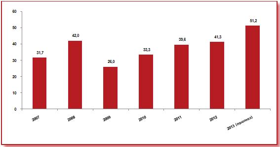 По прогнозам LRI, в 2013 году объем продаж на первичном рынке жилья Санкт-Петербурга увеличится по сравнению с 2012 годом в пределах до 24% (в квартирах).