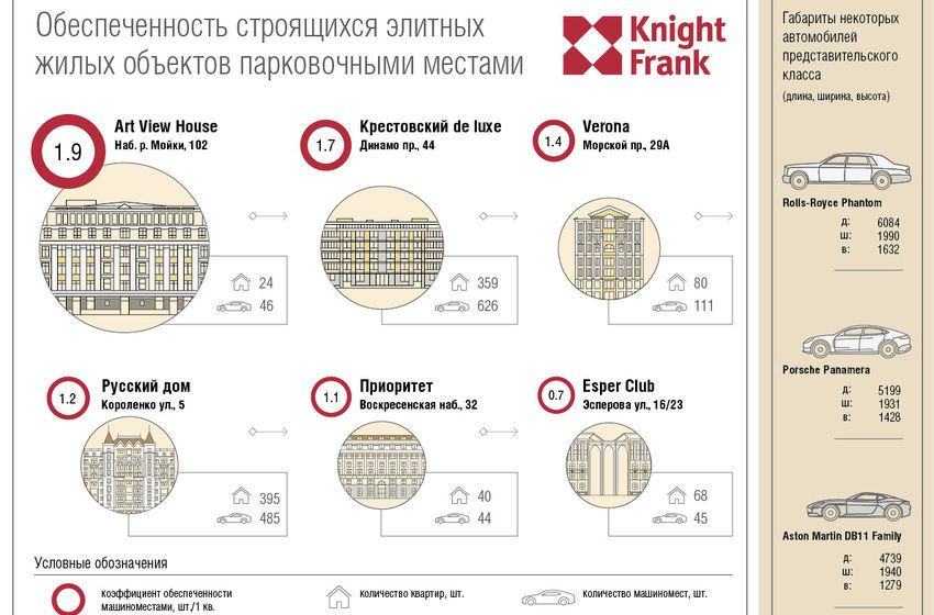 Эксперты Knight Frank St.Petersburg выяснили, насколько строящиеся элитные объекты в Петербурге обеспечены парковочными местами. Были проанализированы все жилые проекты, запланированные ко вводу в эксплуатацию в ближайшие три года.
