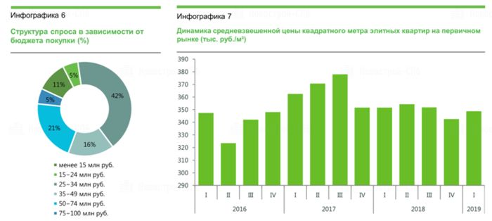 Средневзвешенная цена на элитное жильё по итогам марта 2019 г. составила 349 тыс. руб. за квадратный метр. За квартал показатель увеличился на 1,3%.