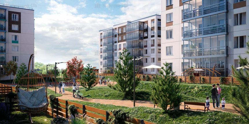 Высота зданий — 7-8 этажей, в них будет 446 квартир. Покупателям предложены варианты метражом 38,1-150,7 кв. м — от 1- до 3-4-комнатных евроформата. На верхних этажах разместятся видовые лоты с террасами. Стоимость жилья начинается от 10,2 млн рублей. Срок реализации проекта — III квартал 2023 года.