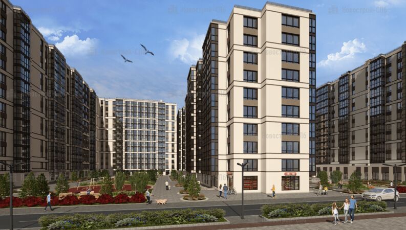 Седьмая июньская новинка — ЖК «ЮгТаун» от компании «КВС». Новостройка будет построена в Пушкинском районе Петербурга рядом с Пулковским и Волхонским шоссе. Малоэтажный проект в Олимпийском стиле возводится в девять очередей, в продажу поступил квартал «Греция». В восьми 5-этажных корпусах представлены квартиры от студий до 3-комнатных, площадь лотов варьируется от 21 до 78 кв. м.