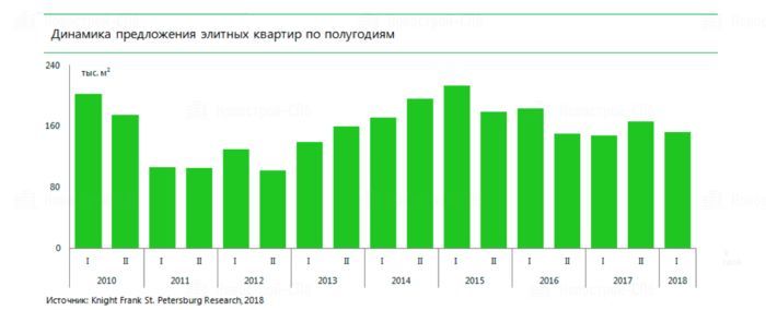 В I полугодии 2018 года в Санкт-Петербурге было продано 21,8 тыс. кв. м элитного жилья, что на 4% больше, чем за аналогичный период прошлого года, сообщают аналитики Knight Frank St Petersburg. Средний бюджет сделки составил 41,2 млн руб. Интересно, что основное количество высокобюджетных квартир сейчас сконцентрировано в построенных домах, а с начала года на рынок не было выведено ни одного элитного проекта.