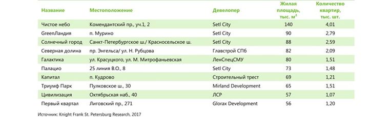 «Тенденцией последних 4-х лет стало смещение предложения и спроса в сторону проектов, расположенных в ближайших пригородных территориях (Кудрово, Мурино, Новое Девяткино, Шушары и т. п.), что обусловлено сокращением пятен под жилую застройку в городской черте», - комментирует Светлана Московченко, руководитель отдела исследований Knight Frank St Petersburg.