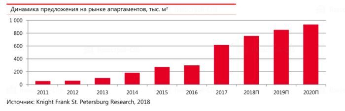 До конца 2018 года возможен выход на рынок семи новых проектов суммарной площадью 116 тыс. кв. м. В течение ближайших двух лет объем рынка может увеличиться до 940 тыс. кв. м апартаментов с учетом проектов, на которые получена разрешительная документация, но еще не выведенных в продажу.