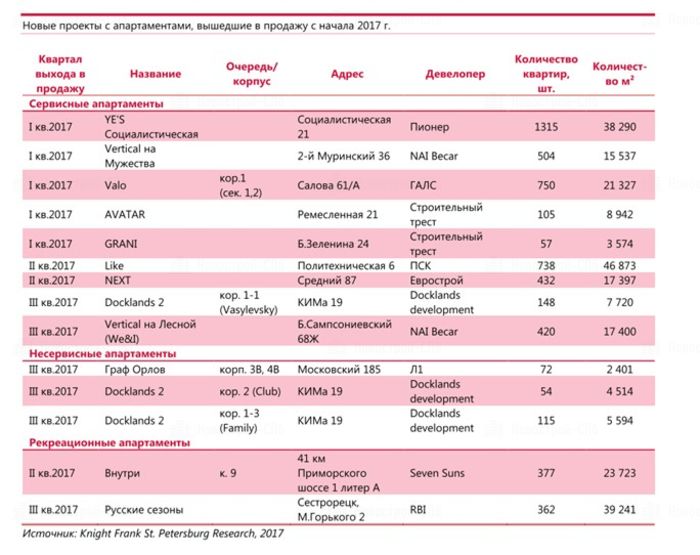 В III квартале 2017 г. на рынок вышли 2 новых проекта и 4 очереди с 1,2 тыс. апартаментов общей площадью 62,5 тыс. кв. м, за 9 месяцев 2017 г. - 9 новых проектов и 5 дополнительных очередей общей площадью около 250 тыс. кв. м.
