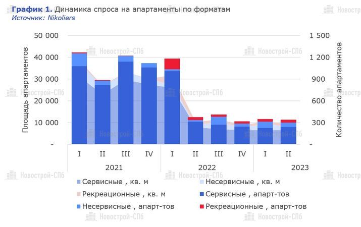По итогам I полугодия аналитики Nikoliers заметили резкое снижение спроса на апартаменты сервисного и рекреационного формата в Санкт-Петербурге. Тогда как число сделок с несервисными лотами выросло в три раза за сопоставимый период.