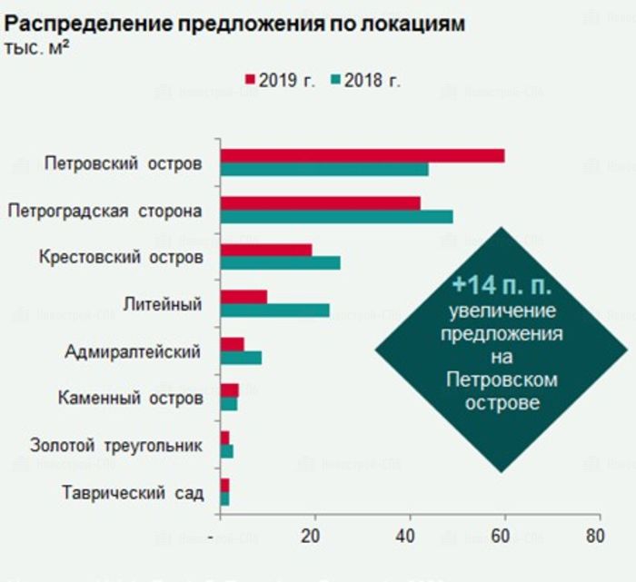 В-третьих, не так много в этом году было новых стартов. Но предложения на рынке по-прежнему достаточно, дефицита точно нет. Например, на одном только Петровском острове сегодня огромный запас предложения в очень разнообразных проектах».