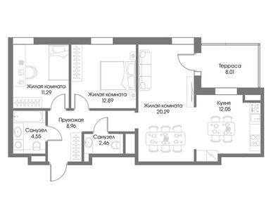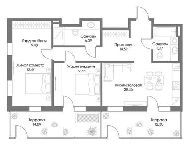 Покупателям в конце октября 2025 года предлагаются резиденции площадью от 40 до 150 кв. м — всего более 40 вариантов планировочных решений. Кроме того есть эксклюзивные лоты, площадь которых достигает 335,5 кв. м. Есть юниты с собственными террасами, балконами и парящими комнатами. Во всех резиденциях будет выполнена премиальная финишная отделка.