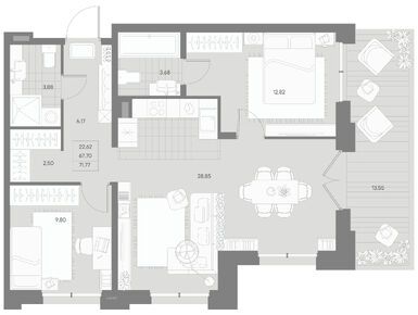 Холлы и общие зоны визуально продолжены парком, что создает особую атмосферу. Приятно находиться в таком пространстве, где природа гармонично вписывается в архитектуру.