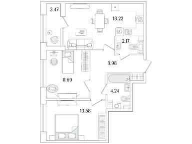 2-комн. кв, 62.19 м