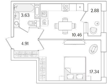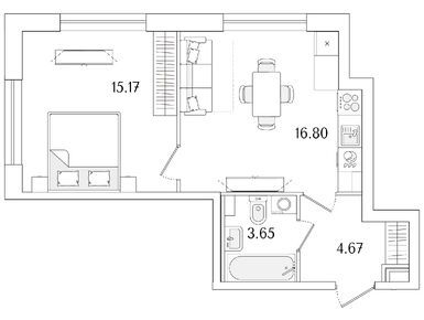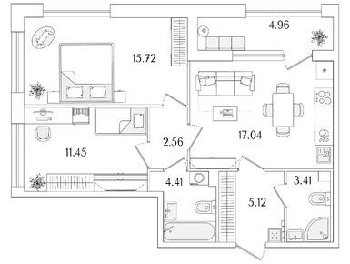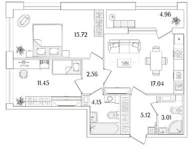 2-комн. кв, 61.53 м