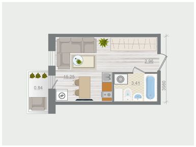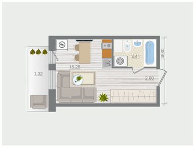 · Студии площадью 29-31 кв. м, с длинной узкой лоджией и нишей, которую можно использовать для организации зоны хранения или приватной спальни;