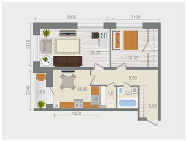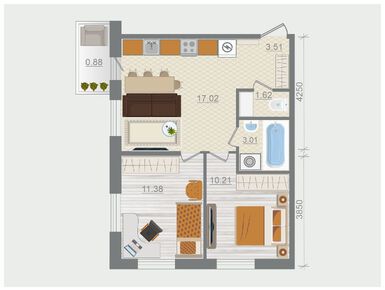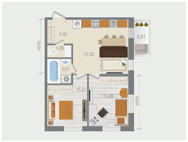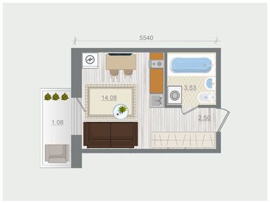 · Однокомнатные квартиры площадью от 39 до 48 кв. м. с альковом для кровати;