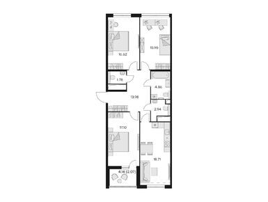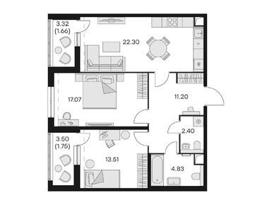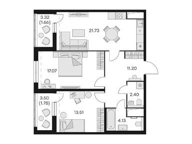 Планировки трехкомнатных квартир в ЖК GloraX Заневский
