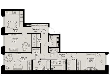 Планировки пятикомнатных квартир в ЖК iD Petrogradskaya (Айди Петроградская)