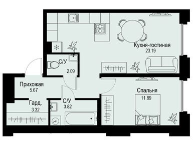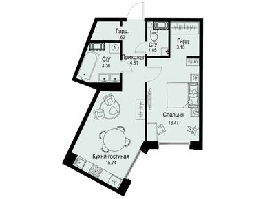 Планировки однокомнатных квартир в ЖК iD Petrogradskaya (Айди Петроградская)