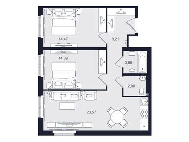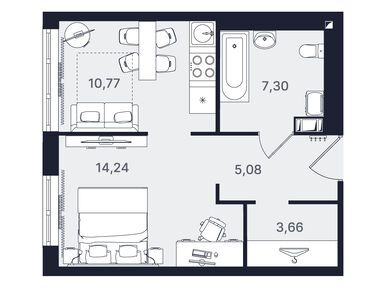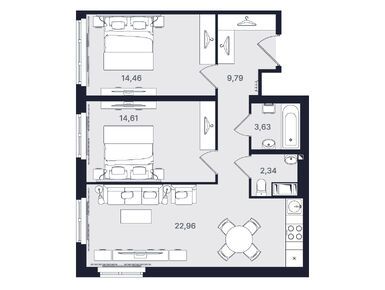 Планировки двухкомнатных помещений в Апарт-отеле «Про.Молодость»