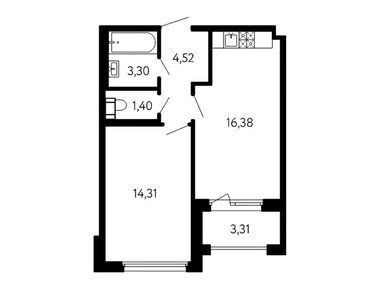 1-комн. кв, 41.57 м