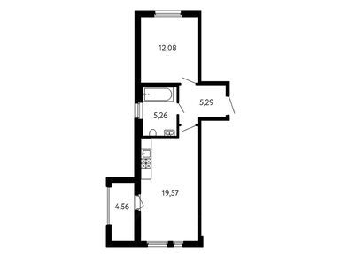 1-комн. кв, 43.57 м