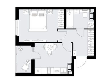 Квартирография проекта включает в себя планировки для разного состава семьи. Площади квартир варьируются от 21 до 78 кв. м. Среди доступных предложений есть функциональные студии с просторной остекленной лоджией и большим окном; однокомнатные квартиры с просторным санузлом, в котором можно будет установить полноразмерную ванну; семейные квартиры линейного или распашного типа с 2-3 изолированными спальнями. Квартиры на первых этажах отличаются увеличенной высотой потолков (4,5 м), а также наличием собственного патио.