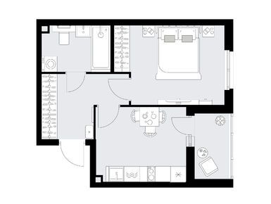 Большинство лотов будут с дизайнерской отделкой, есть небольшой пул квартир без отделки и формата white box. Отделка будет выполнена в светлых бежевых или серых тонах, также есть классический вариант с белыми стенами.
