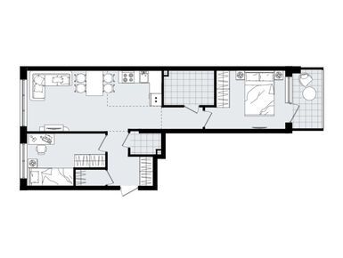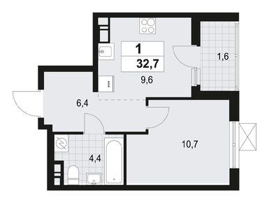 В большинстве планировок предусмотрены балконы или лоджии. Глубина летних пространств составляет не менее 1,4 м. На такой широкой лоджии можно организовать рабочий кабинет, лаунж-зону или зимний сад.