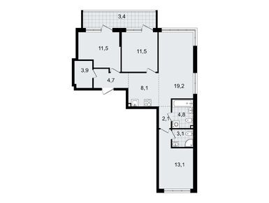 Планировки трехкомнатных квартир в ЖК «А101 Всеволожск»