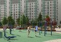Внутренний двор сочетает современные детские игровые площадки из безопасных материалов, спортивные тренажеры и тихие зоны отдыха среди зелени. Авторский ландшафтный дизайн с деревьями и цветочными композициями делает пространство живым и уютным.