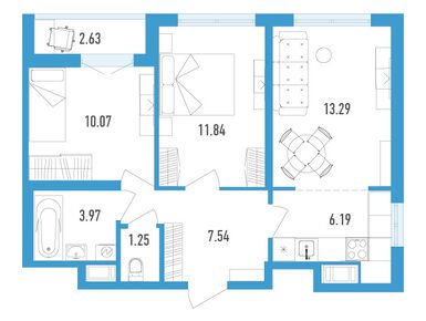 В мае 2025 года в ЖК «Аэросити» можно купить квартиры в готовых и строящихся домах. Среди предложений есть варианты с классическими и евро-планировками, от студий до «евротрешек». Площади лотов — от 18 до 84 кв. м.