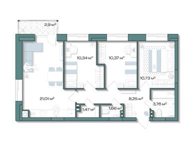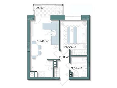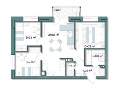 В доме запроектировано 120 квартир площадью 32–68 кв. м. В ЖК нет студий, только одно-, двух- и трехкомнатные варианты: каждая планировка создана для семейного формата. Просторные кухни-гостиные до 21 кв. м станут местом отдыха для всей семьи, а отдельные кладовые и продуманные прихожие помогут поддерживать порядок. В трехкомнатных квартирах сможет комфортно жить семья с двумя детьми: у каждого ребенка собственная комната, где есть место для письменного стола, а у родителей — просторная спальня с большим окном.
