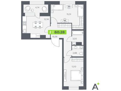 Планировки двухкомнатных квартир в ЖК «Аквилон Солар Парк»
