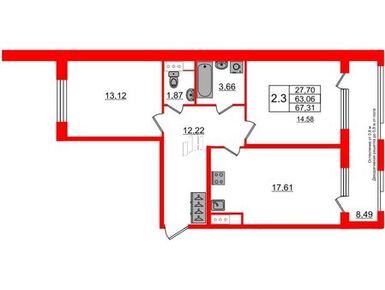 Стены покроют гладкими обоями под окраску, на пол уложат кварц-виниловый ламинат, установят светлые двери с хромированной фурнитурой, матовые розетки и выключатели. На стены и пол санузлов уложат крупную керамическую плитку от известных европейских брендов, поставят сантехнику и мебель. В застекленных балконах на пол уложат керамогранит. Высота потолков в комнатах – до 2,77 м.