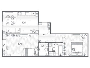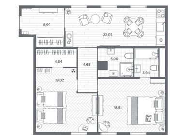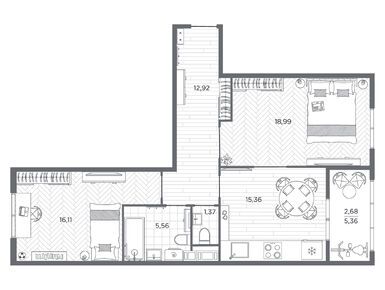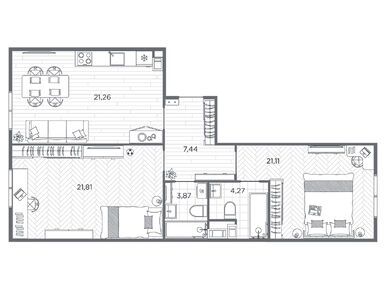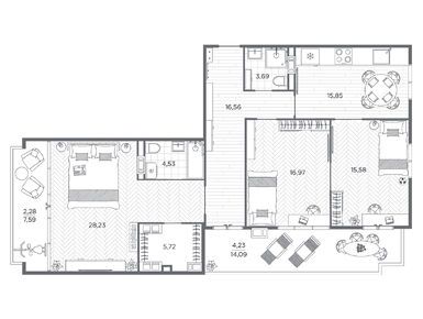 Планировки трехкомнатных квартир в ЖК BAKUNINA 33