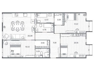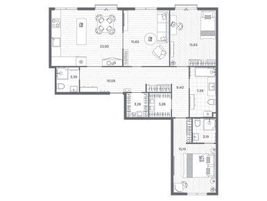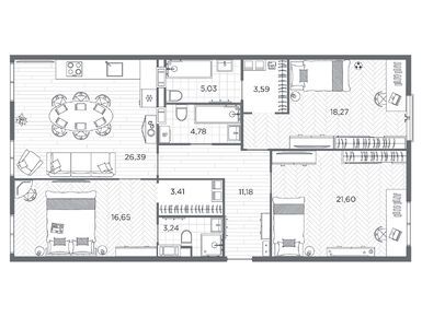 Планировки четырехкомнатных квартир в ЖК BAKUNINA 33