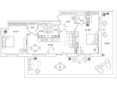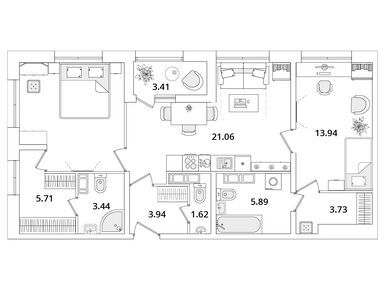 Планировки четырехкомнатных квартир в ЖК «БелАрт»