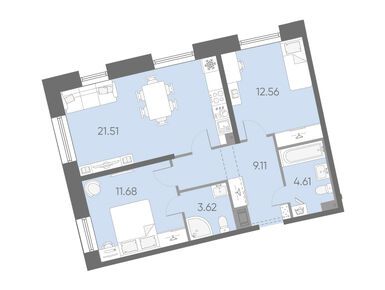 2-комн. кв, 62.21 м