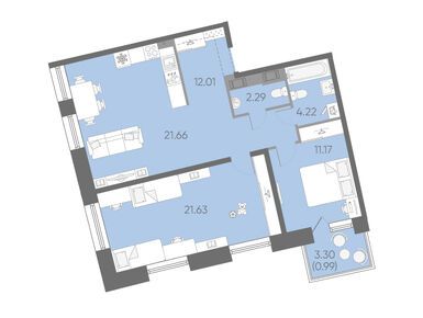 2-комн. кв, 63.09 м