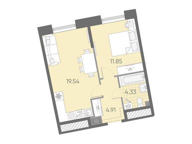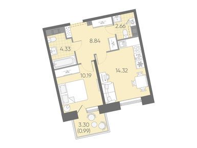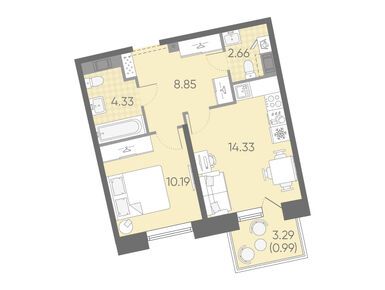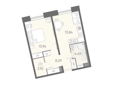 1-комн. кв, 41.33 м