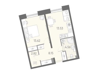 1-комн. кв, 42.68 м