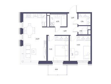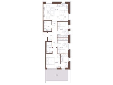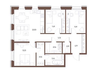 В новостройке предлагаются как традиционные, так и эксклюзивные форматы жилья, начиная от однокомнатных лотов площадью от 39.35 кв. м, и заканчивая просторными видовыми квартирами с улучшенными планировками. В их числе варианты с эркерами, видовыми террасами, балконами или лоджиями с угловым остеклением, с панорамными окнами и несколькими ванными комнатами. В некоторых секциях предлагаются дизайнерские квартиры с готовым оформлением интерьера, продуманным до мелочей. В зависимости от типа и формата жилья высота потолков в помещениях варьируется от 3 до 3.45 м. Максимальная площадь жилой недвижимости в ЖК «Черная речка, 41» равна 107.28 кв. м.