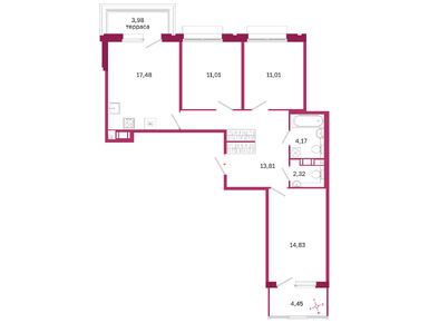 В ЖК представлено более 100 вариантов планировок — от эргономичных студий до четырехкомнатных квартир. Среди особенностей — мастер-спальни с собственным санузлом и гардеробной, квартиры с эркерами, открытыми и французскими балконами на верхних этажах, а также единичное предложение со вторым светом.
