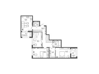 Проект включает 316 квартир, начиная от однокомнатных квартир и включая пятикомнатные квартиры. Кроме классических планировок будут представлены квартиры евро формата с просторной кухней-гостиной. Все лоджии в доме остеклены, в некоторых квартирах представлено увеличенное остекление «в пол».