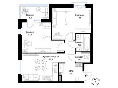 Планировки двухкомнатных квартир в ЖК «Экография»