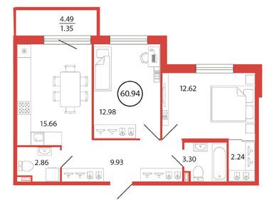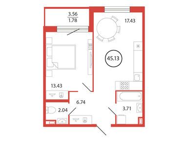 Купить квартиру в ЖК «Энфилд» (по состоянию на май 2025 года) можно как в готовых, так и в строящихся корпусах. Среди предложений есть лоты площадью от 38,4 до 84,9 кв. м. Типовых маленьких студий в проекте нет, зато есть двухуровневые квартиры на первом этаже со вторым светом и просторной лоджией. Есть планировки классические и евро-формата, в каждой предусмотрено летнее пространство — лоджия, балкон или открытая терраса.