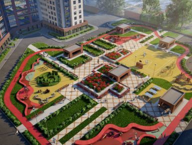 Дворовая территория жилого комплекса закрыта для автомобилей и оборудована системой видеонаблюдения, поэтому дети могут свободно и безопасно играть во дворе на площадках с горками и каруселями. Любителям здорового образа жизни — спортивное оборудование для тренировок, а тем, кто хочет отдохнуть после рабочего дня, — тихие уголки с лавочками и качелями.